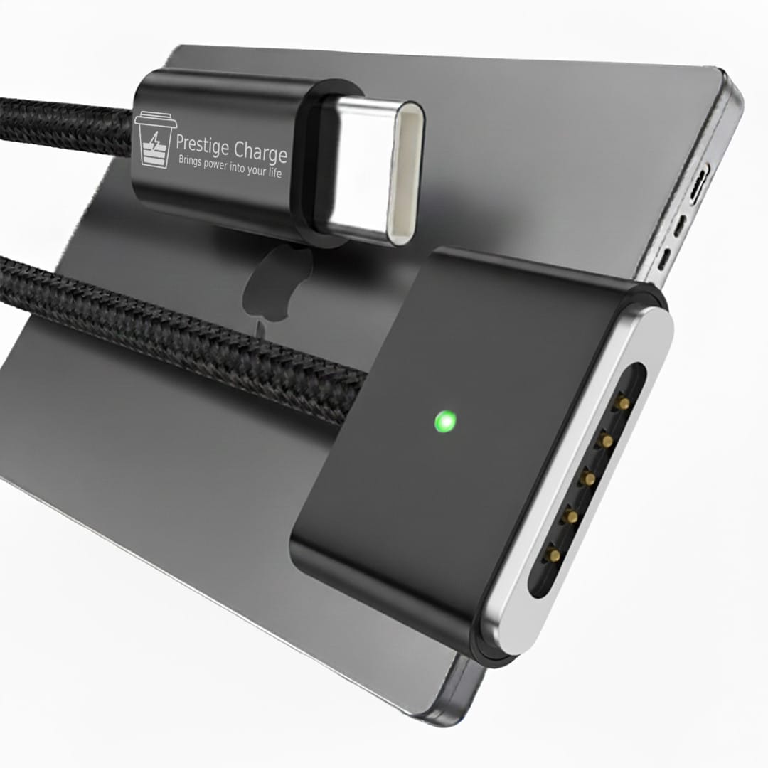 Cablu de Incarcare Magsafe 3, PRESTIGE CHARGE, pentru Apple Macbook Air / Pro, 140W, PD 3.1, Indicator LED, Textil Rezistent, 2m, Negru
